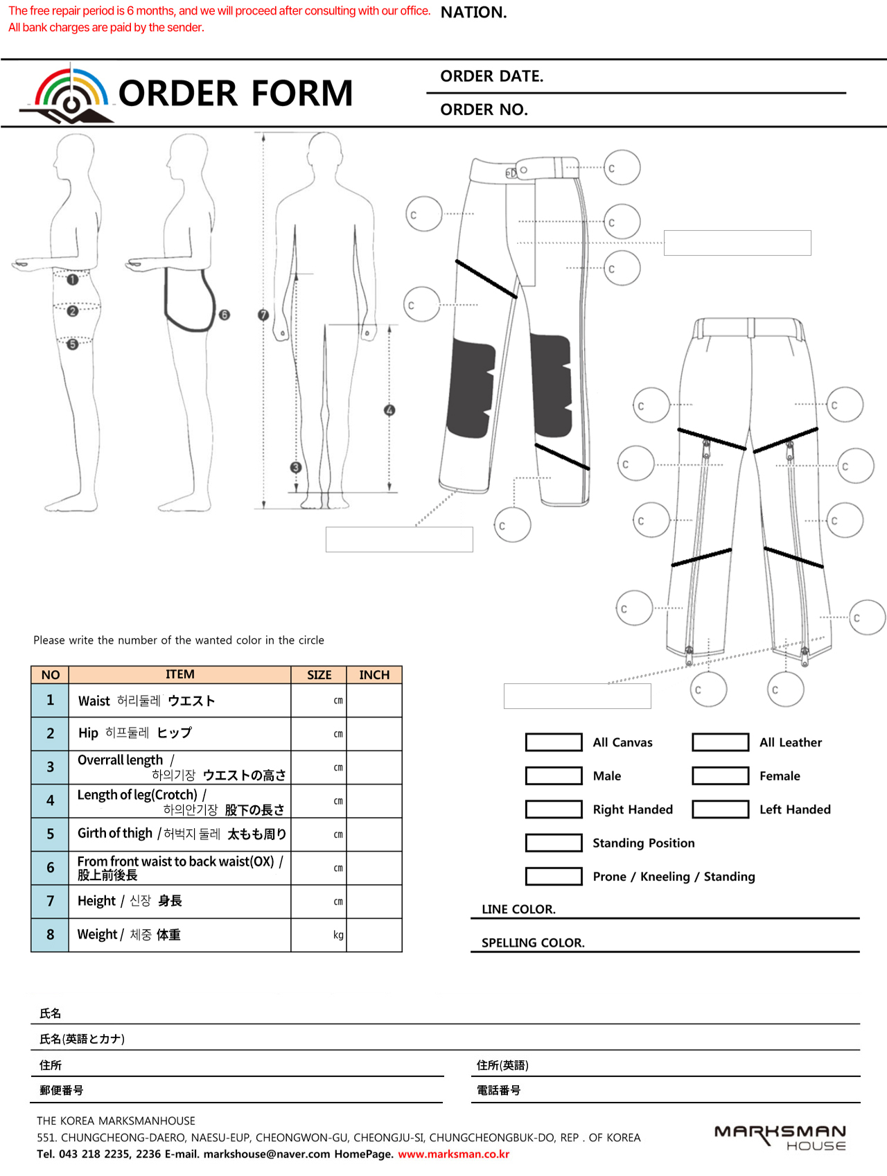 立射姿勢の正面と側面からの写真をメールで送ってください。
